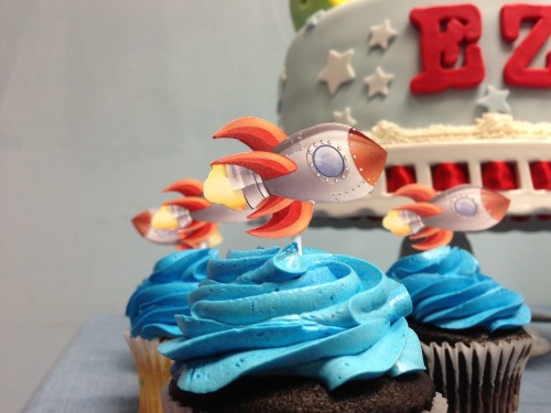 I created a charming cake and delicious cup cakes, what little boy would love to get those delicious sweets…